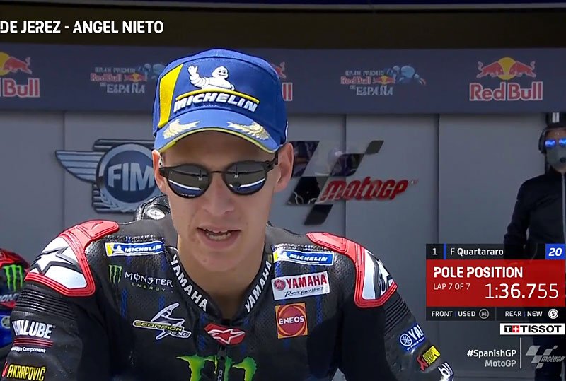 A peine descendu de sa Yamaha YZR-M1 officielle après avoir obtenu la pole position du Grand Prix d’Espagne à Jerez, Fabio Quartararo s’est confié devant la caméra du site officiel MotoGP.com.
