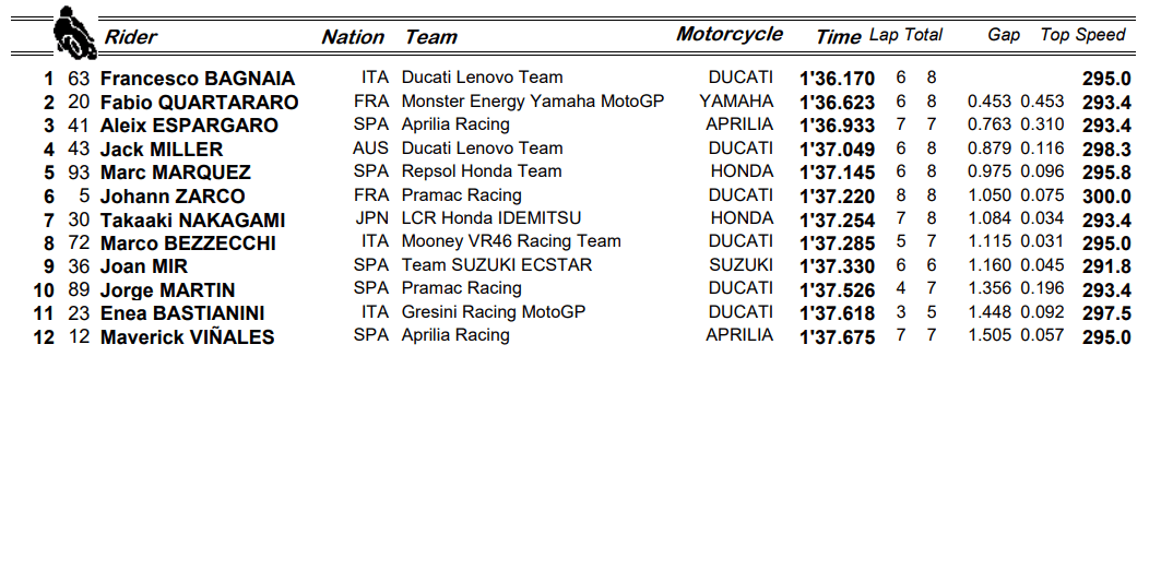 « Je suis très content car depuis le premier tour couvert hier j’ai de très bonnes sensations avec la moto. Je suis à l’aise avec le pneu medium, celui qu’on devrait utiliser pour la course, et mon rythme est bon. Je n’ai en revanche pas été en mesure de réaliser le moindre bon tour avec le pneu soft car je subis beaucoup de chattering avec celui-ci. Hier soir, on a beaucoup réfléchi avec l’équipe et on a fini par changer l’équilibre de la moto uniquement dans la perspective des qualifications car nous savions que pour la course nous étions déjà rapides, chose que nous avons prouvé lors de la FP4. Lors des qualifications j’ai réalisé un tour de folie, j’ai débranché mon cerveau. Ce fut difficile d’aller en-dessous de la barre des 1’37 mais au final je suis très content d’être sur la première ligne de la grille. »