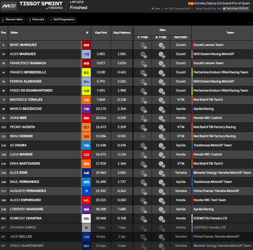 Résultat du Sprint au Grand Prix d’Espagne 2025, à Jerez :
