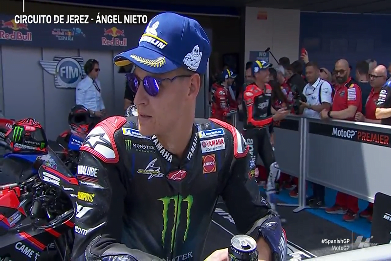 A peine descendu de sa machine après avoir obtenu la deuxième position à l’issue du Grand Prix MotoGP d’Espagne, Fabio Quartararo s’est confié devant la caméra du site officiel MotoGP.com.