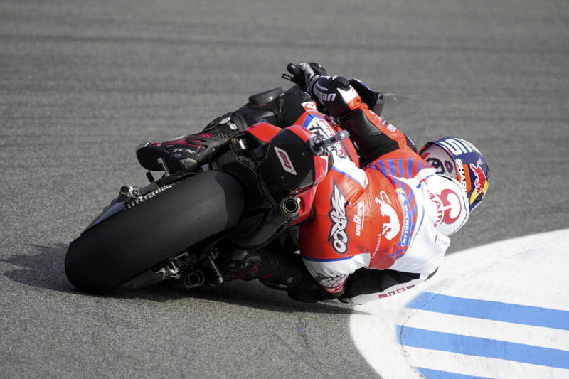 « Non, pas au point de dire qu’on a changé de sport, parce que la forme physique a quand même toujours été importante. Mais il faut toujours un cœur très fort et être capable d’avoir le cardio très, très haut. C’est sans doute pour ça qu’on peut parfois être surpris par les jeunes de 20 ans car ils ont des cardio entre 180 et 200, qui tiennent. À 30 ans, le 200 est parfois plus dur à tenir (rires). Donc le cardio a toujours été là, même de la 125 jusqu’à la MotoGP, mais c’est parfois une force pure qui aide peut-être à compenser des situations délicates. Donc pas de changement de sport, car à la fin, celui qui gagne est celui qui est le plus à l’aise. Moi je vois : Mes deux podiums, c’est là où j’ai été le plus en forme à la fin de la course. Alors que là, huitième, je n’aurais pas pu faire une roue avant ou même un cabrage comme a fait Miller. Donc quand on est à l’aise, on balance tellement la moto où il faut, quand il faut, qu’on utilise le vrai potentiel d’une moto de course, et ça, ça s’apprend dès les petites catégories. En tant que pilote, ce sont des sensations peu descriptibles et c’est ça qui est génial. Je dirais que la forme physique aide à tenir une saison pour compenser les situations délicates, mais si on est sur le nuage tout le temps, il n’y aurait presque pas besoin de s’entraîner physiquement. »