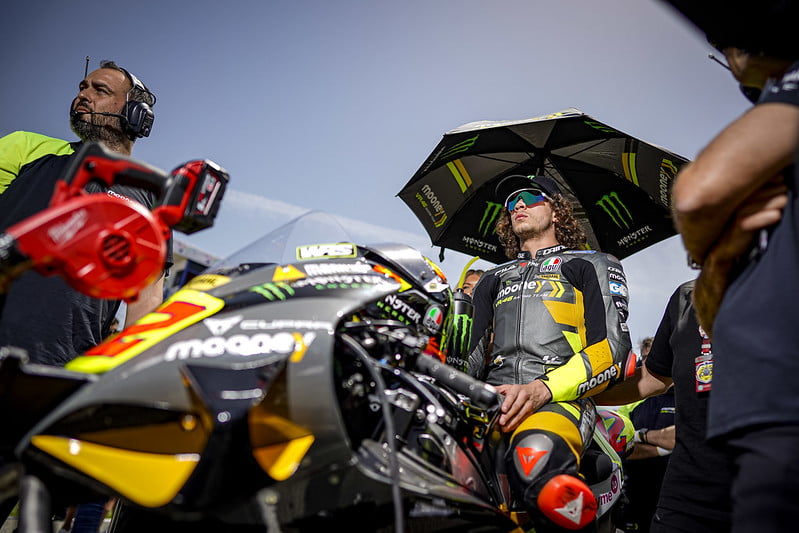 Marco Bezzecchi : « Je suis très content du départ et cela m’a certainement aidé à faire une bonne course. Vale et moi avons été en contact constant ce weekend. Il ne m’a pas non plus mis la pression en répétant sans cesse « Attention au départ ! » mais je suis content et je vais lui envoyer un message ce soir. Je suis très heureux, j’ai réussi à rester dans le groupe des meilleurs et je suis heureux pour toute l’équipe. Ils ont fait un excellent travail et Ducati nous soutient également à 100%. Nous sommes partis forts dès le vendredi, nous ne nous sommes pas relâché et aujourd’hui nous avons fait une belle course. c’est dommage pour le dépassement d’Enea (Bastianini) dans le tout dernier tour, mais nous devons ramener à la maison toutes les choses positives. A Portimão, j’ai eu du mal, le changement de temps dimanche ne m’a pas aidé, alors qu’ici nous avons été constants dans toutes les séances. Je ne peux pas me plaindre, c’était une belle course. Le seul défaut est que Bastianini m’a rattrapé au virage 9 dans le dernier tour car j’avais du mal sur le côté gauche du pneu, alors j’ai un peu ralenti au virage 8, puis il est passé au virage 9. Mais je suis satisfait, c’était bien. Continuons comme ça et faisons de notre mieux lors de la journée d’essai de demain. »