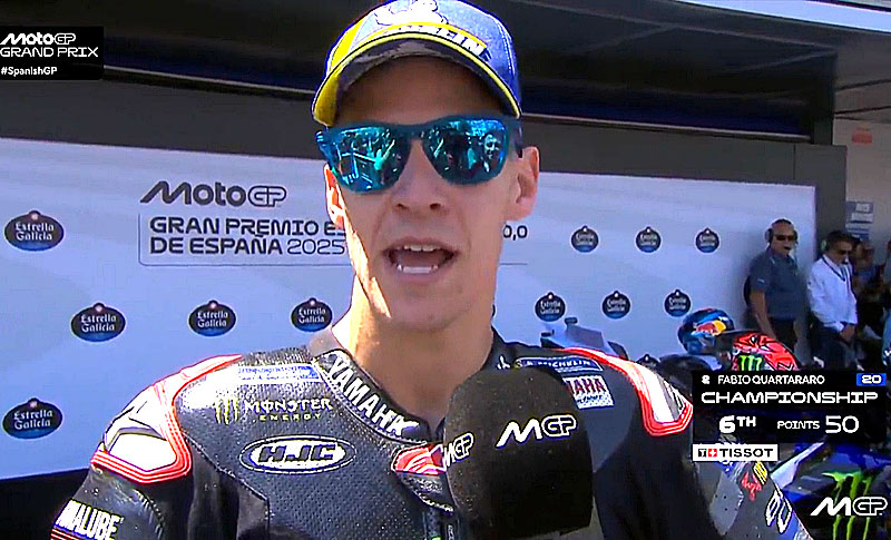A peine descendu de sa Yamaha YZR-M1 du team d’usine après avoir terminé 2e du Grand Prix d’Espagne MotoGP 2025 sur le circuit de Jerez, Fabio Quartararo s’est confié devant les caméras du site officiel MotoGP.com avec la joie de retrouver une position qu’il n’avait pas connue depuis bien longtemps…