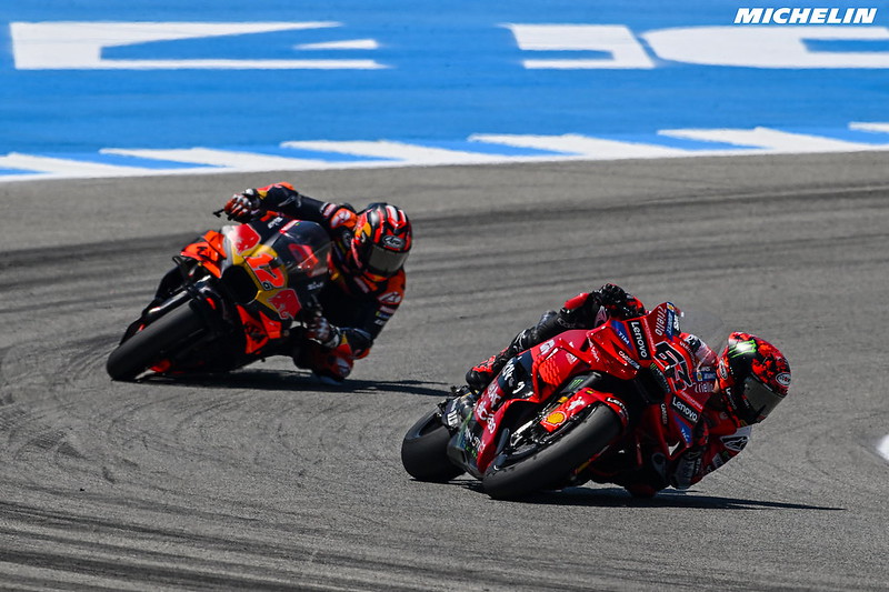 Francesco Bagnaia : « Non, je ne suis pas content de ce genre de course ! Je ne pouvais rien faire de plus. J’étais assez satisfait sur les 3-4 premiers tours, mon rythme et mes sensations étaient très bons, mais dès que je suis arrivé derrière Fabio, je n’ai eu aucune chance de dépasser.