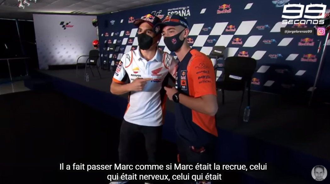 Lorenzo parle aussi de Marc Marquez : « le week-end de Marc a bien commencé, mais avec la chute, il a perdu confiance. Cela aurait pu être bien pire et heureusement, l’accident n’a pas eu de conséquences graves ». Puisque l’on parle de dommages physiques, un mot est glissé au sujet du syndrome des loges : « le syndrome des loges est un problème qui vous fait perdre le rythme de la course, cela vous fait perdre de la sensibilité et de la force » explique Lorenzo « Dommage car il était lancé vers la troisième victoire consécutive » signale-t-il à propos de Quartararo.