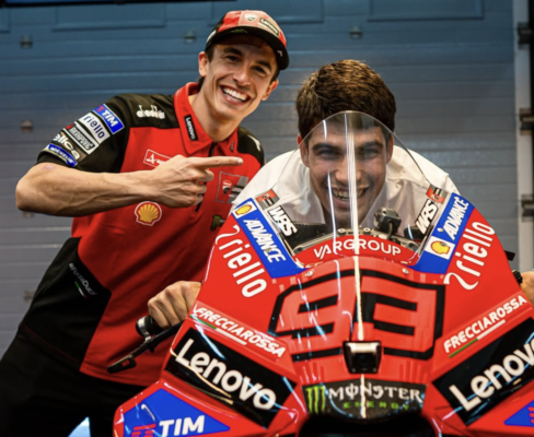 Arrivé à Jerez après avoir assisté à la finale de la Copa del Rey à Séville, Carlos Alcaraz a été accueilli par Marc Márquez, qui lui a offert une visite privilégiée du box Ducati. Les deux champions ont partagé leur passion pour la compétition, Alcaraz montant sur la Desmosedici GP25 de Márquez pour une séance photo publiée réseaux sociaux. Le tennisman a également pu échanger avec Francesco Bagnaia et Gigi Dall’Igna, directeur général de Ducati Corse.