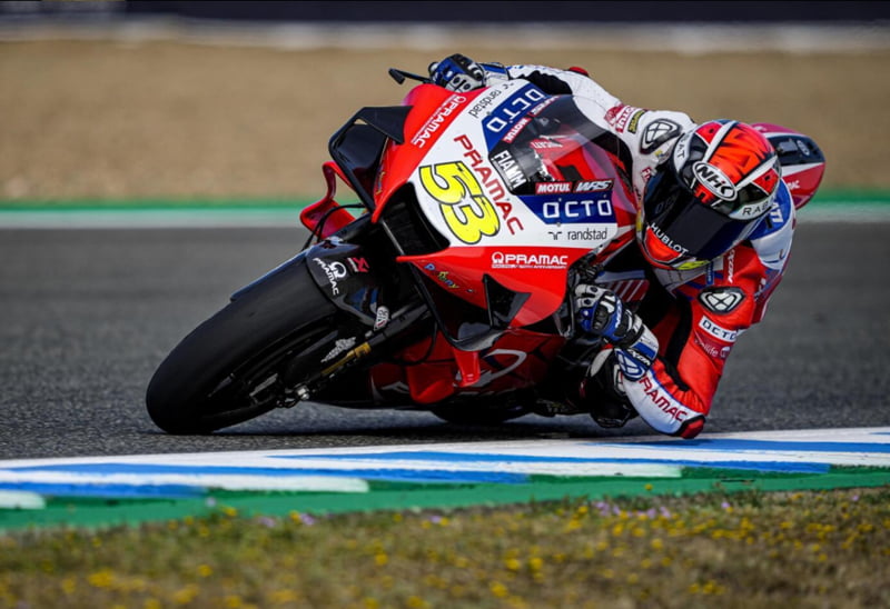 A Jerez, dimanche soir, pris par un soudain désir d’exotisme, nous nous sommes toutefois  » rendus  » au débriefing d’Esteve Rabat qui remplaçait Jorge Martin blessé. Et nous n’avons pas été déçus !