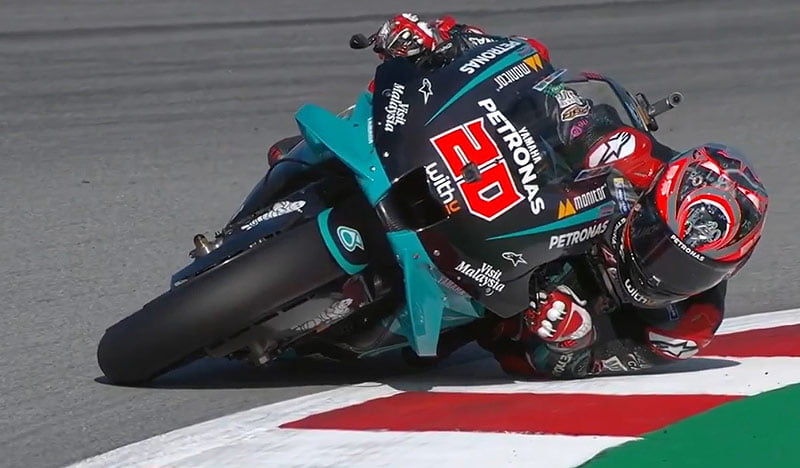 Entre le pro aguerri des plateaux et le jeune homme de 21 ans, on a même vu les rôles s’inverser quand Yann Barthès s’est égaré dans des approximations à faire sourire les passionnés de MotoGP en demandant « vous avez le genou qui touche presque, c’est ça ? ». A cet instant, il aurait été facile pour Fabio Quartararo de rectifier en indiquant que non seulement le genou touchait le vibreur en virage, mais aussi le coude, voire l’épaule… mais non, El Diablo est resté sagement dans sa boîte, sans doute par modestie et pour ne pas gâcher la belle ambiance qui régnait sur le plateau, ce dont Yann Barthès, en bon professionnel, s’est aperçu : « je le dis mal, je le sens dans ses yeux ».