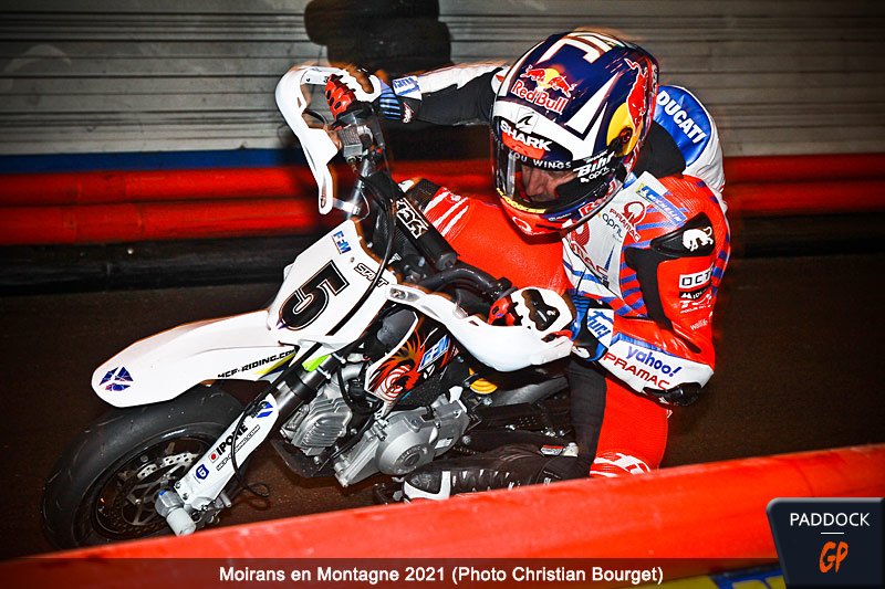 « J’insiste là-dessus, parce que pour moi les étrangers sont bons car sans s’en rendre vraiment compte, ils copient ce qu’ils voient, et ils ont la chance de ne voir que des bons. Que ce soit en Italie avec la VR46 qui est toutes les semaines pas seulement sur des motos tout-terrains mais aussi sur des petits circuits avec des petites motos. Donc un gamin qui ne fait pas partie de la VR46 et qui voit ça, il copie ! Et en Espagne, c’est pareil : il y a des gamins qui ne font pas partie d’un groupe et qui ont peu de moyens, mais quand ils sont une piste et que d’un seul coup il y a trois pilotes qui viennent d’Andorre, trois pilotes de Grand Prix, qui s’entraînent, ils ont tout de suite un exemple extrême, un peu comme moi j’ai montré l’exemple aujourd’hui. Mais ça, ils l’ont quasi chaque semaine ! Je me suis rendu compte de ça, et c’est pour ça que j’insiste : si j’étais juste là pour rouler et ne pas dire de commentaires, les gamins se diraient presque « il le fait parce que c’est Zarco ». Il y en a un qui me l’a dit aujourd’hui. Oui et non, si vous voulez être bon à un moment donné, il faudra faire du Zarco, il faudra faire ce que je fais. Donc j’étais là pour dire « ce n’est pas parce que je m’appelle Zarco que je fais ça, c’est parce que j’ai envie. »