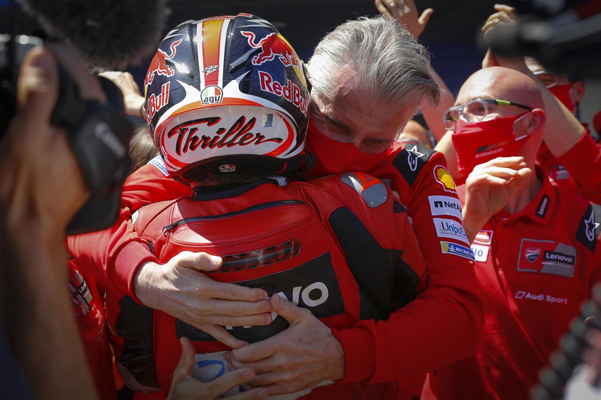 Chez Ducati, on se retient pour ne pas tomber dans une euphorie qui serait contre-productive. D’autant plus qu’après quatre courses, trois sont tout de même tombées dans la besace Yamaha. Mais tout de même, rarement la firme italienne n’a connu d’aussi bons résultats en un début de saison de MotoGP. Le directeur sportif Paolo Ciabatti ne peut d’ailleurs que le constater : « nous étions toujours sur le podium dans les quatre premières courses, trois fois même avec deux pilotes » rappelle ainsi l’Italien. « À mon avis, nous n’avons jamais réussi à faire ça en Championnat du Monde MotoGP ».
