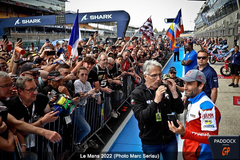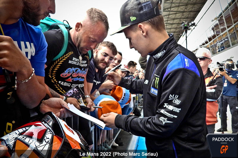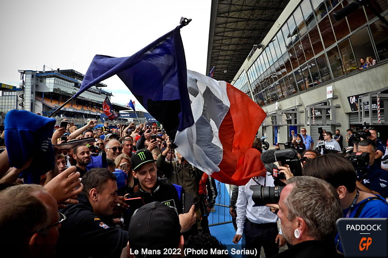 Jeudi 17 heures précise, Le Mans, France : les grilles de l’accès nord à la pit-lane s’ouvrent et la foule amassée depuis un bon moment court pour être au premier rang devant les box de Fabio Quartararo et Johann Zarco.