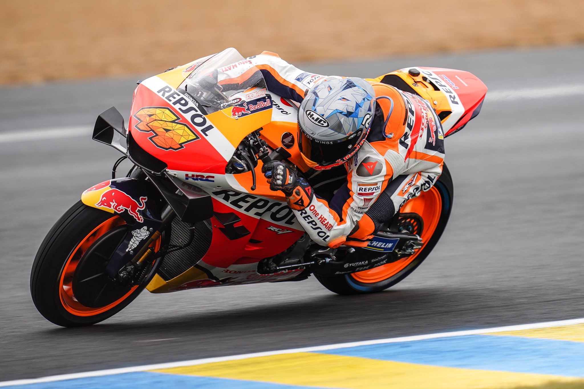 Sur cette dernière, il dit : « nous avons peu de traction lorsque la moto roule tout droit. Je pense que c’est un problème pour nous en général. Mais nous avons quelques idées pour le Mugello, nous pouvons améliorer cela. En course, nous aurions dû utiliser le pneu arrière medium, comme Marc. Mais bien sûr, c’était très risqué, comme vous l’avez vu avec les deux chutes de Marc ».