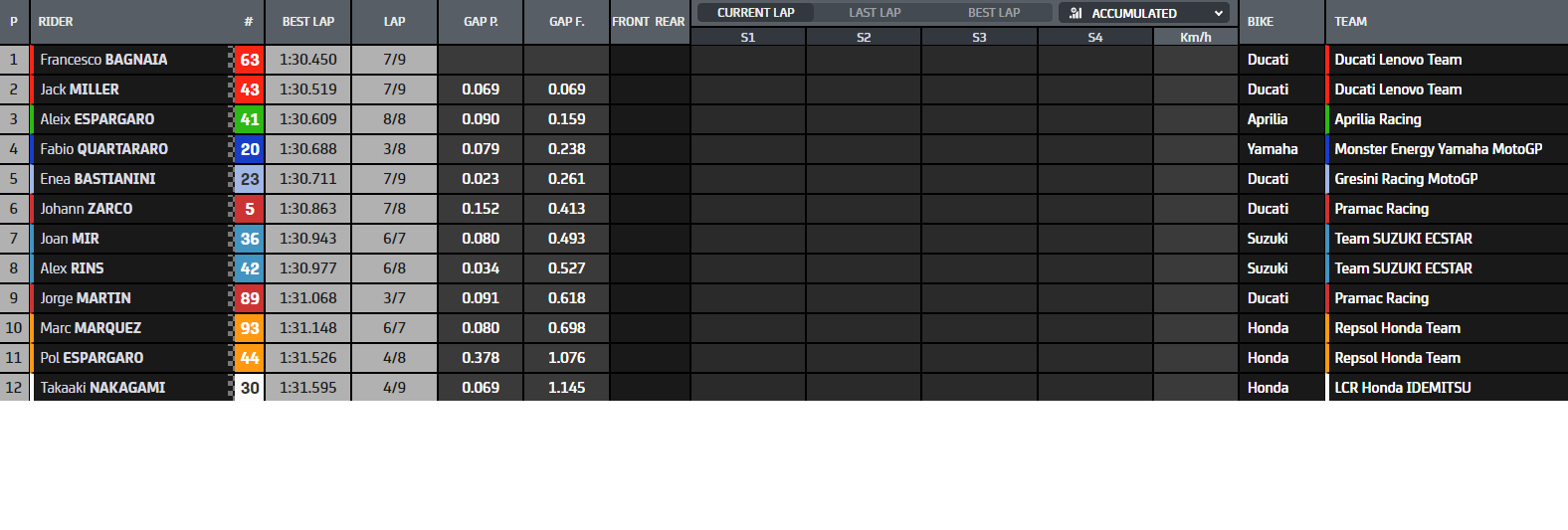 1’30.450 Pecco Bagnaia |
