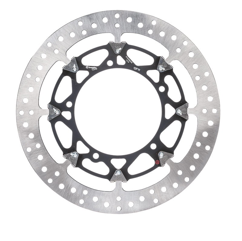 Les motos de route et les motos utilisées pour les journées de piste n’ont évidemment pas de disques en fibre de carbone. Cela ne signifie pas pour autant que l’expérience acquise en MotoGP n’a pas eu un effet positif sur la production en usine. Le disque T-Drive, avec sa bande de freinage en acier et son suppport en aluminium usiné dans la masse, en est une bonne illustration.