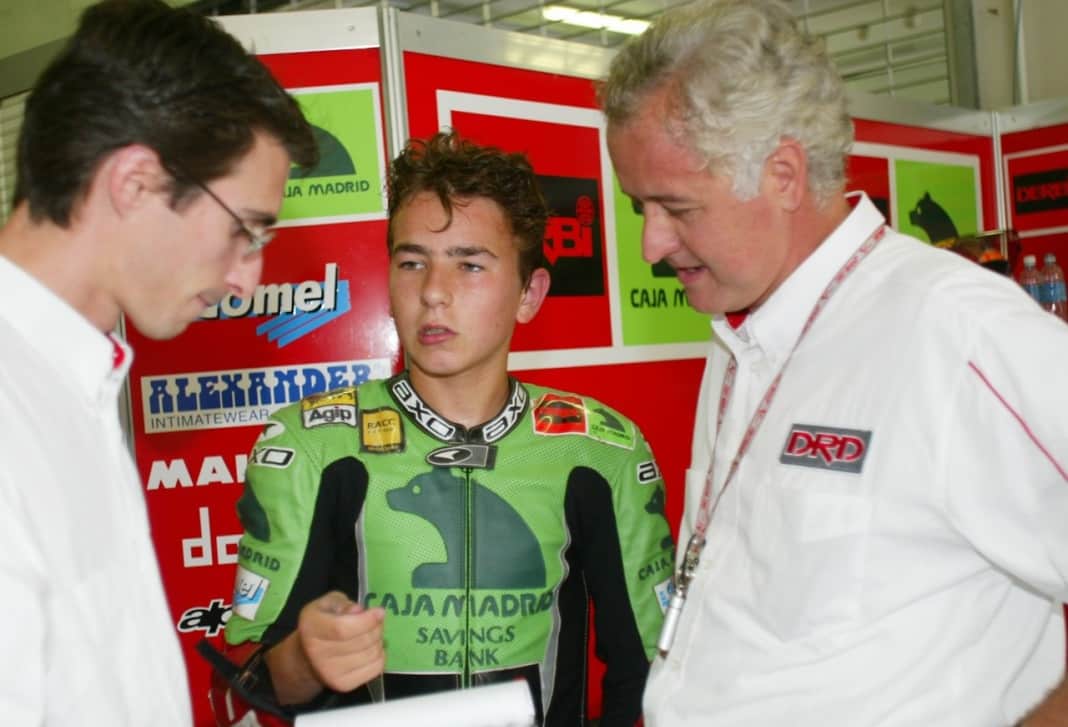 « Celui qui a aussi joué un rôle dans sa carrière est Dani Amatriain, qui était son tout. Dani m’a fait voir Jorge et a décidé de parier sur lui. J’ai la photo de quand nous avons signé le contrat et quand il a mis la combinaison, le printemps après, il avait grandi de 13 centimètres. Tout le monde m’a regardé chez Derbi et a dit : « Cet Italien est fou ». Ce qu’il a obtenu en 2003, lors de la première course qu’il a gagnée, à Rio, était quelque chose inoubliable. Le «X Fuera» est venu de là. » Un pan d’histoire intéressant à partager !