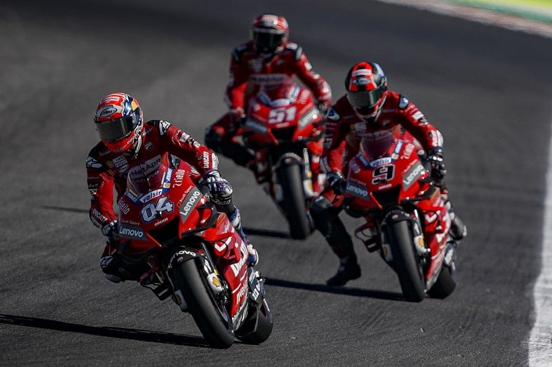 Ce n’est que lors du warmup que l’espoir revint avec la troisième place à 0.252. Mais ce n’était qu’une illusion car, comme le précisait le team manager, Davide Tardozzi, il y avait des pneus usés pour Marc Márquez, Maverick Viñales et Fabio Quartararo, mais des pneus neufs pour les Ducati. Tardozzi estimait leur handicap en course à environ 0.3 à 0.4 au tour. Pour Davide Tardozzi « Le secteur 3 est un gros problème pour nous, car il semble que nous n’ayons aucune adhérence dans les virages rapides, ce qui crée des problèmes pour tous les pilotes Ducati. Ce matin, ça semble aller un peu mieux, je ne sais pas si c’est parce que les températures sont un peu plus basses ou quoi. Mais c’est sûr, nous lutterons en course. »