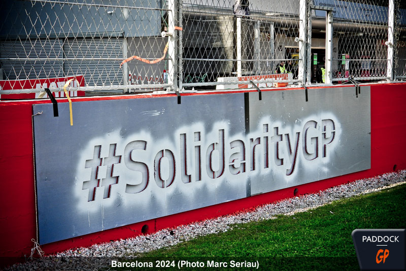 Certes, Dorna Sports et l’IRTA connaissent par cœur le circuit de Barcelona-Catalunya et ses installations, simplifiant ainsi la complexe mise en place du paddock, mais encore fallait-il trouver les centaines de personnes locales, commissaires de piste, médecins, personel d’encadrement, de sécurité, etc. pour gérer les différentes séances, les pass, les parkings, etc. sans parler de l’organisation imprévue de la soirée des FIM MotoGP Awards, du test MotoGP du mardi suivant ou des enchères en faveur de Valence…