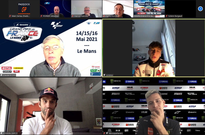 Crise sanitaire oblige, c’est comme l’année dernière par visioconférence que Sébastien Poirier (Président de la FFM), Pierre Fillon (ACO), Patrick François (Shark Helmets), Fabio Quartararo (Yamaha Monster Energy), Johann Zarco (Pramac Racing) et Lorenzo Fellon (SIC58 Squadra Corse) ont pu échanger et répondre aux questions transmises par les journalistes.
