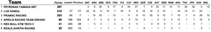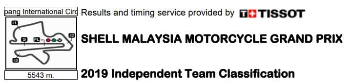 Avec ses deux pilotes, Fabio Quartararo et Franco Morbidelli, sur la première ligne de la grille de départ, l’équipe Petronas Yamaha SRT espérait logiquement un peu plus que les sixième et septième positions obtenues finalement en course. Mais elle se consolait largement avec le titre des équipes indépendantes pour sa première année d’existence ( ! ) obtenu à domicile devant les fans malaisiens, un bilan très largement positif.