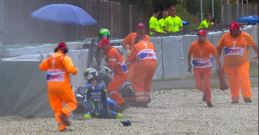 « C’était totalement ma position, donc j’étais derrière Aleix et Fabio mais c’est vrai que j’ai eu un contact avec Franco. Je pense que Franco a essayé de fermer mais j’étais totalement du bon côté de ma moto et je ne le voyais même pas. J’ai senti le contact et je ne savais même pas s’il avait chuté ou non. On m’a dit après qu’il était tombé et je suis vraiment désolé pour lui ».