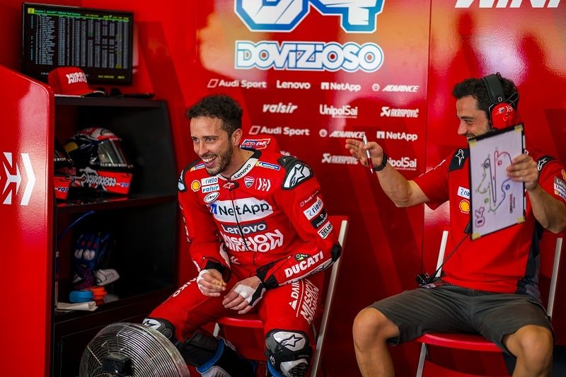 Dovizioso n’a pour le moment aucune pole position à son crédit cette année, mais il est parti trois fois de la première ligne. Il a remporté les Grands Prix du Qatar et d’Autriche et pointe en deuxième position au classement provisoire du Championnat du Monde à 58 points de Marc Márquez.