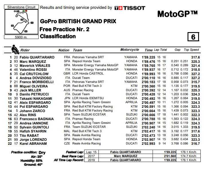 MotoGP Grande Bretagne Silverstone J1 : chronos
