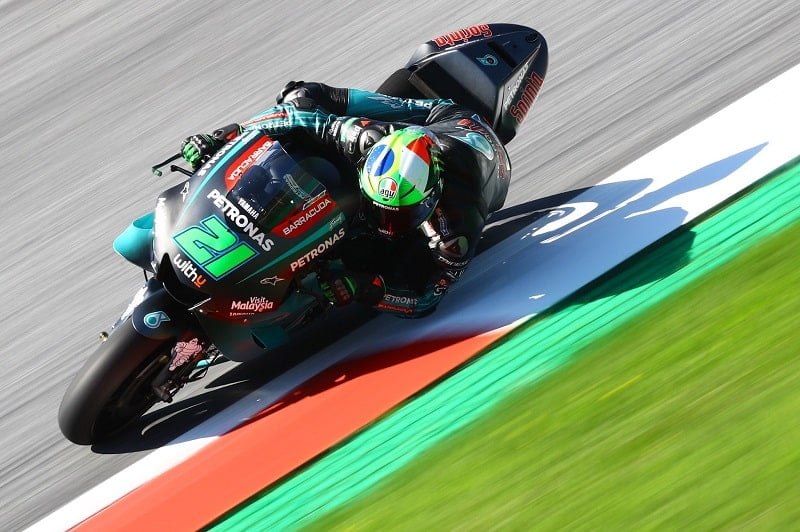 Avec sa qualification en huitième position, Franco Morbidelli a parfaitement complété le magnifique tir groupé de Yamaha qui plaçait Valentino Rossi deuxième, Fabio Quartararo quatrième et Maverick Viñales sixième. Parmi les huit premières machines, la moitié étaient des Yamaha qui semblaient particulièrement à l’aise et performantes sur le nouveau revêtement du circuit de Silverstone. C’était la troisième fois cette année qu’il y avait 4 Yamaha parmi les 8 premières machines, après les GP d’Argentine et de Catalogne.