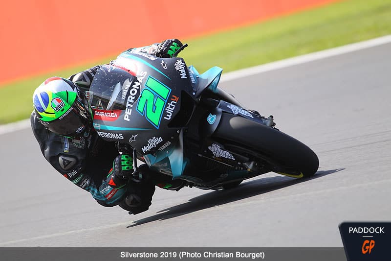 Avec sa qualification en huitième position, Franco Morbidelli a parfaitement complété le magnifique tir groupé de Yamaha qui plaçait Valentino Rossi deuxième, Fabio Quartararo quatrième et Maverick Viñales sixième. Parmi les huit premières machines, la moitié étaient des Yamaha qui semblaient particulièrement à l’aise et performantes sur le nouveau revêtement du circuit de Silverstone. C’était la troisième fois cette année qu’il y avait 4 Yamaha parmi les 8 premières machines, après les GP d’Argentine et de Catalogne.