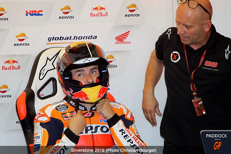 Après une première journée de reprise en MotoGP qui s’est avérée être un calvaire, il n’y a pas eu de miracle pour Jorge Lorenzo qui a continué sa procession durant ce samedi à Silverstone. L’officiel Honda s’élancera avant-dernier, mais là n’est pas l’essentiel pour le Majorquin. Il lui fallait revenir pour retrouver ses sensations, parler à son équipe, et se relancer progressivement. Avant toute chose, il lui faudra éviter la chute…