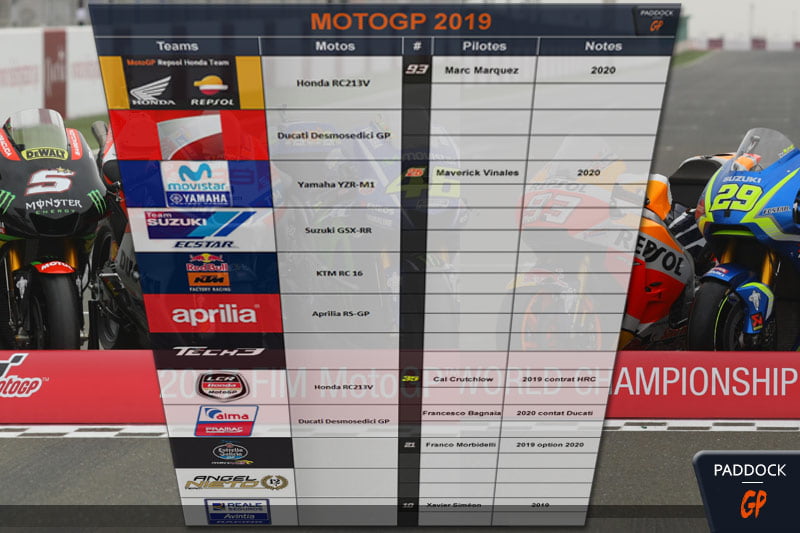 Si cette tendance se confirme, et elle le devrait avec la probable prochaine annonce de la signature de Valentino Rossi, le plateau 2019 risque fort de ressembler à celui de 2018 en ce qui concerne les têtes d’affiche, d’autant que Ducati essaie de conserver ses pilotes avec un budget moindre (voir ici) et que Dani Pedrosa pourrait bien rempiler deux années supplémentaires, au vu de ses dernières performances…
