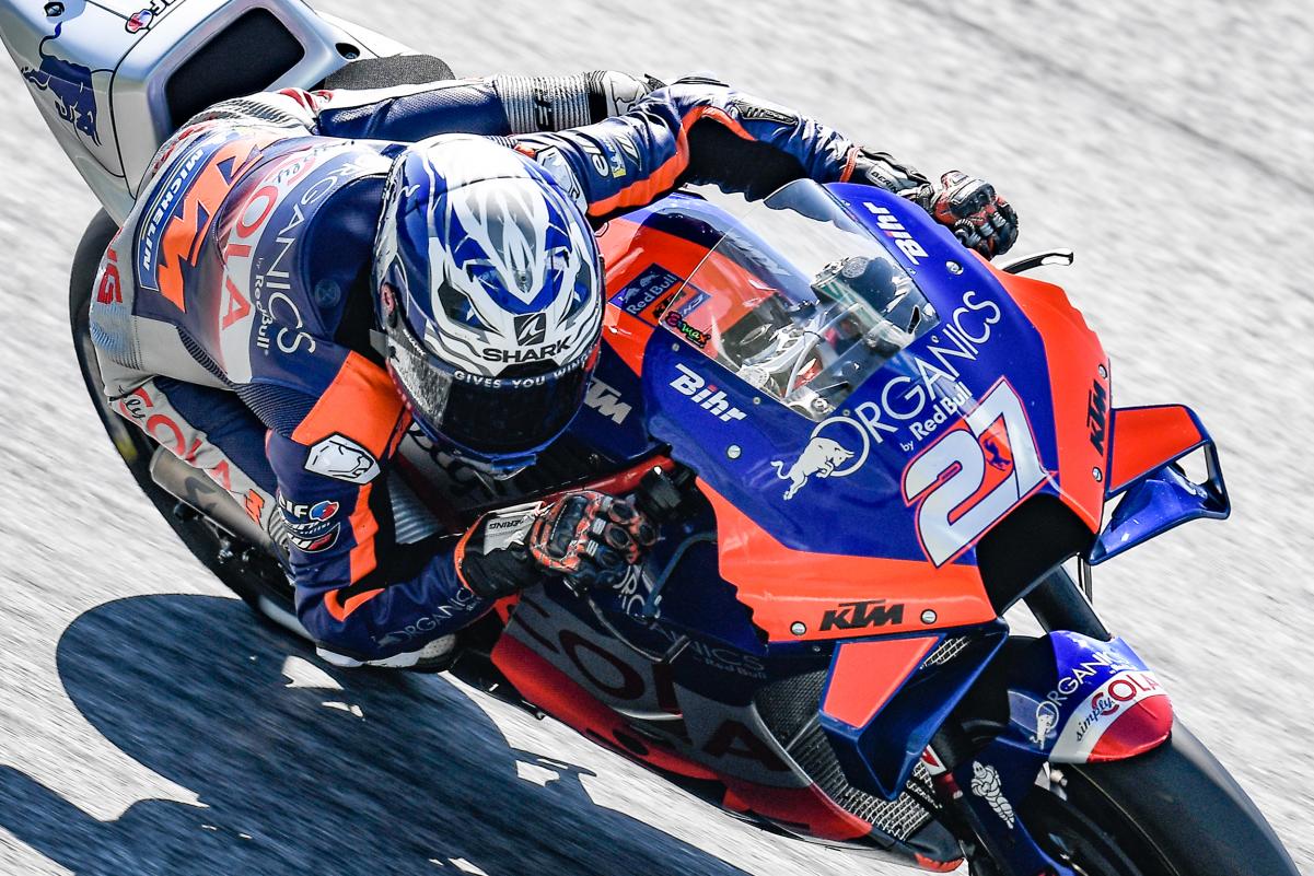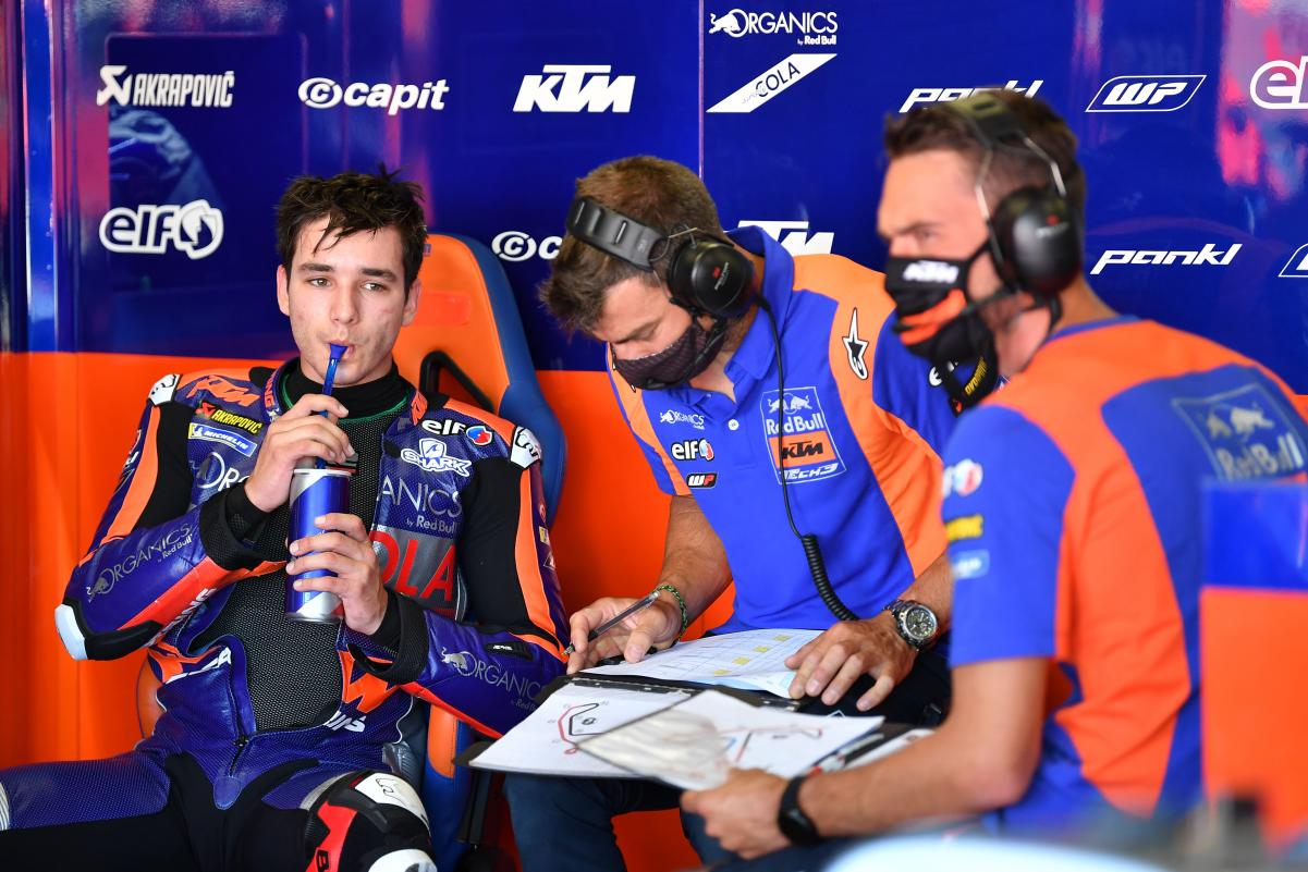 Il ajoute : « nous avons Brad, Pol et Miguel, et son travail n’est pas de rivaliser avec eux, il n’avait que 19 ans quand il a commencé à faire les tests ! Bien sûr, il a été obligé de s’arrêter à la première course à Jerez à cause de la chaleur, et je lui ai dit qu’il avait besoin de s’entraîner davantage. La deuxième course, un accident stupide, et je n’étais pas en colère, mais j’étais malheureux ».