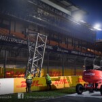 Les travaux ont débuté avant-hier soir avec l’installation du portique support des feux de départ. Celui-ci se trouve désormais au milieu de la ligne droite des stands.