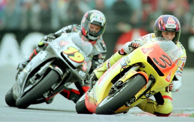 C’est moi qui l’ai affublé de ce fameux surnom « le plombier » qui lui est resté. J’en ai discuté avec lui en Argentine l’année dernière. On était au repas Honda, et pendant trois heures, on a parlé de toutes ses courses. Il était étonné que je les connaisse aussi bien et m’a dit qu’il ne m’en voulait pas pour l’histoire du plombier. À plusieurs reprises, il m’avait déjà dit qu’avec le recul, 20 ans après, il reconnaissait que s’il avait été à la place d’Olivier Jacque, il aurait finalement fait la même chose. D’ailleurs, à Barcelone, quand j’ai vu qu’il y avait Olivier, je suis allé le chercher et on est resté tous les trois pendant 45 minutes à refaire le monde et à rigoler. C’est là qu’un de mes potes a pris la fameuse photo où on est tous les trois avec Olivier et Ralf.