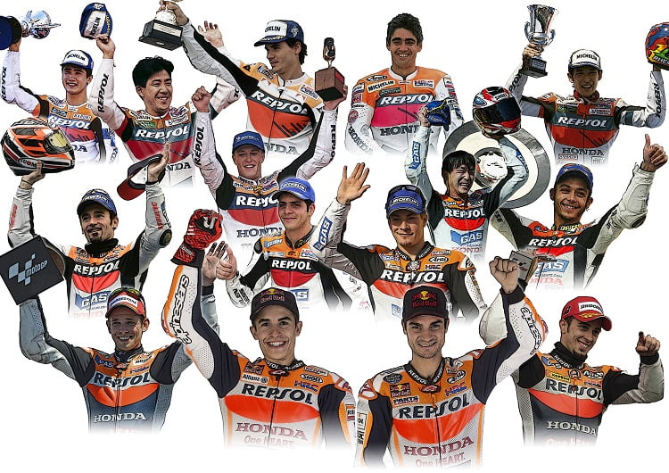 Les précurseurs ont été Mick Doohan avec ses quatre couronnes accompagné d’Alex Criville qui a été le premier pilote espagnol Champion du Monde. C’était en 1999 et pour l’Espagne, c’est le phénomène Marc Márquez qui a pris la relève en se présentant d’entrée comme le plus jeune talent à être consacré à ce niveau de la compétition. Un Graal après lequel le compatriote Pedrosa court toujours. Mais il peut se targuer, après onze ans de présence dans le box HRC, d’une victoire, au moins, à chaque campagne.