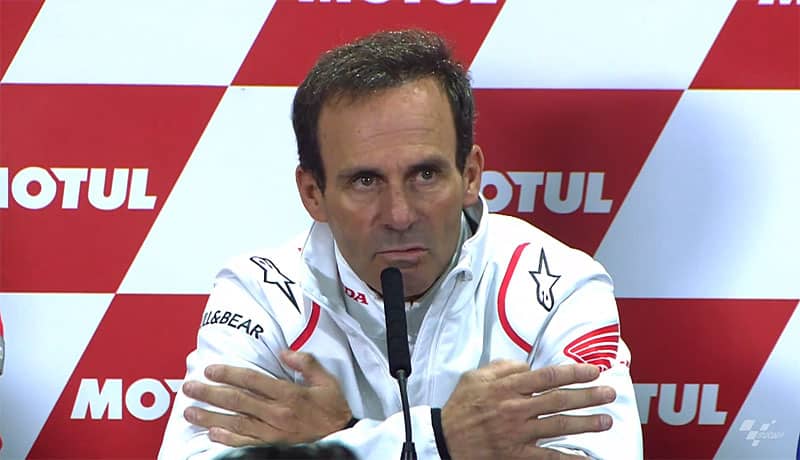 Alberto Puig a-t-il du mal à se remettre de l’accident de son champion Marc Marquez ? Une terrible chute qui récompense très mal une remontée fantastique… Qui aurait peut-être dû être calmée du bord des stands. Mais Alberto Puig n’a pas donné de consigne et le voilà maintenant suspendu aux bulletins médicaux et à réfléchir sur les délais d’une convalescence… Mais ne comptez pas sur lui pour faire profil bas. Bien au contraire…