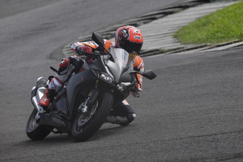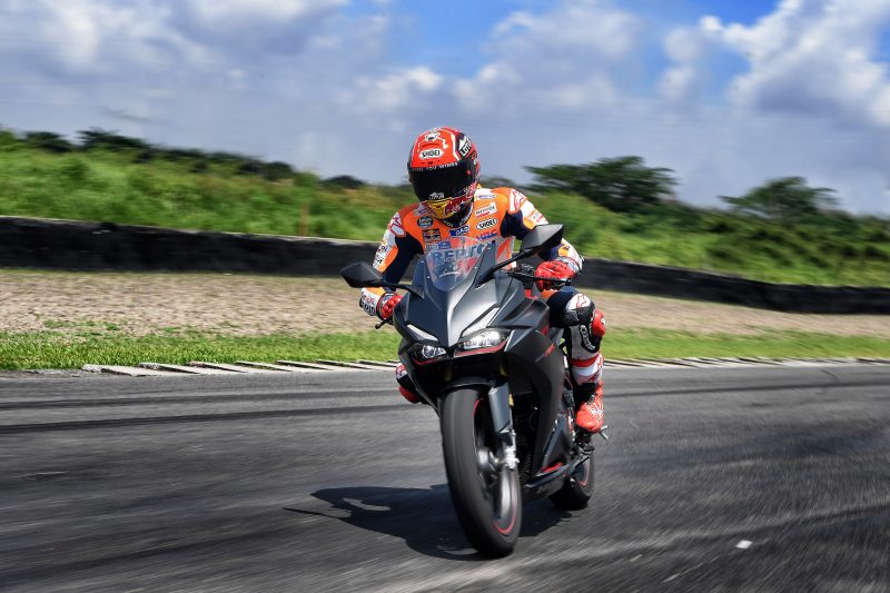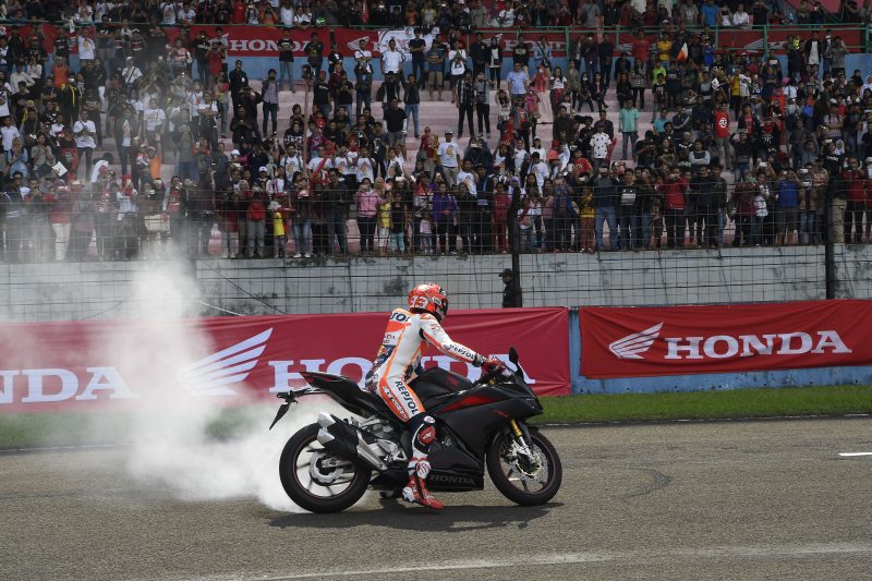 « J’ai aussi pris beaucoup de plaisir à tourner avec la CBR250RR sur le tracé de Sentul. La foule présente dans les tribunes était incroyable. Je n’imagine même pas ce que ça donnerait si on faisait un Grand Prix ici. Ce serait de la folie ! Je regrette juste que Dani n’ait pu être avec moi ici. J’espère qu’il nous reviendra vite ».