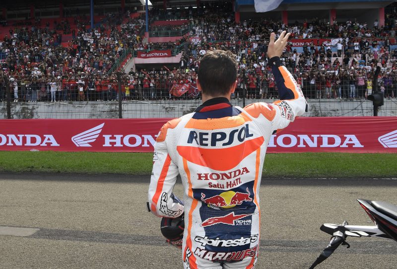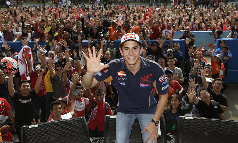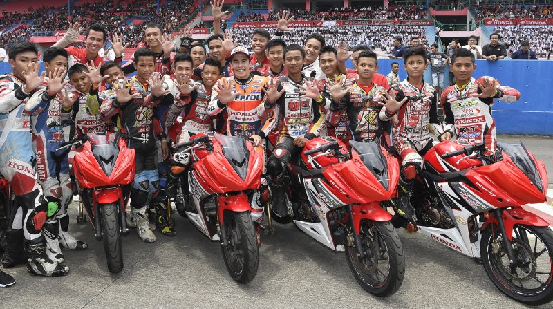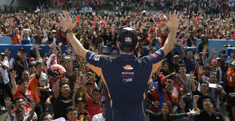C’est une ferveur qui ne se dément jamais. A chaque passage d’un pilote de MotoGP en Indonésie, le succès populaire est garanti. Le passage de Marquez dans ce pays émergent stratégique pour le marché de la moto l’a une nouvelle fois démontré. Il y avait foule pour le voir sur un scooter et faire des tours du tracé de Sentul avec une CBR250RR. Alors imaginez un jour une prestation avec la RC213V…
