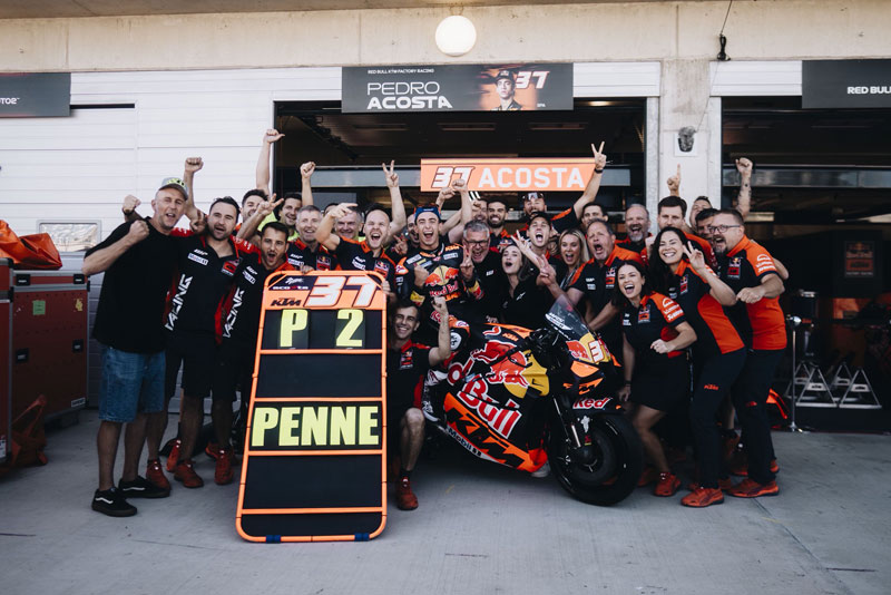 Pedro Acosta a terminé deuxième, signant ainsi son meilleur résultat en MotoGP depuis sa deuxième place en Indonésie l’an dernier. Il s’agit de son septième podium en catégorie reine et de son deuxième de la saison, après sa troisième place décrochée à Brno.