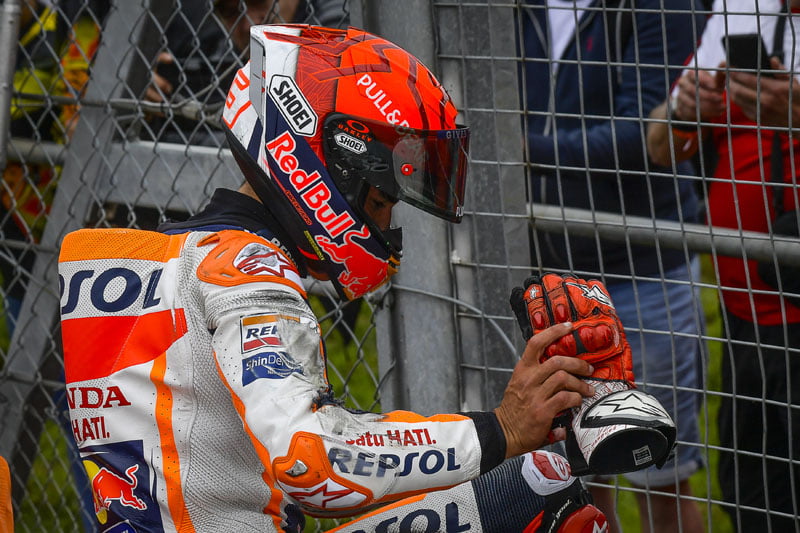 Marc Márquez, au soir de l’incident, a assumé ses obligations médiatiques et s’est expliqué (voir l’intégralité de ses propos ici) : Une simple erreur de sa part qui, malgré son record de 16 chutes déjà enregistrées cette année, n’insinue pas le doute dans l’esprit du champion. Apparemment.