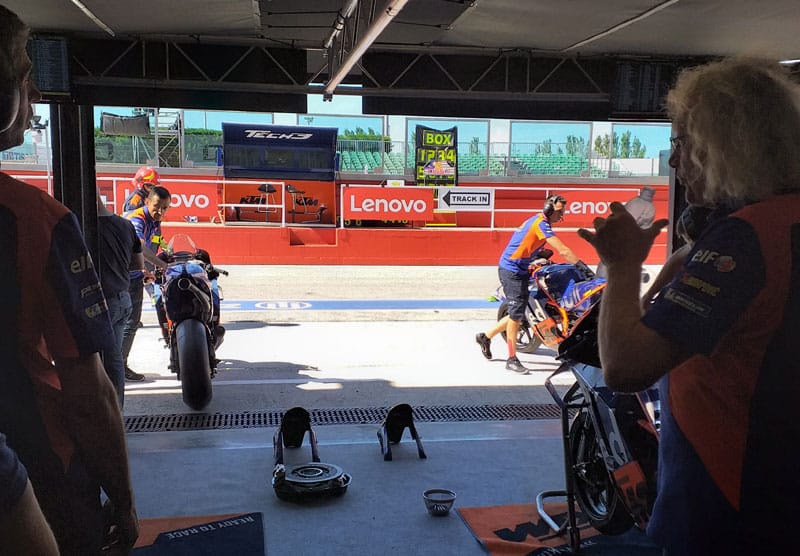 En plus de visiter les box TECH3 des MotoGP et des Moto2, nous avons eu la chance d’assister à une séance d’essai en live dans leur box. C’était comme à la télé !