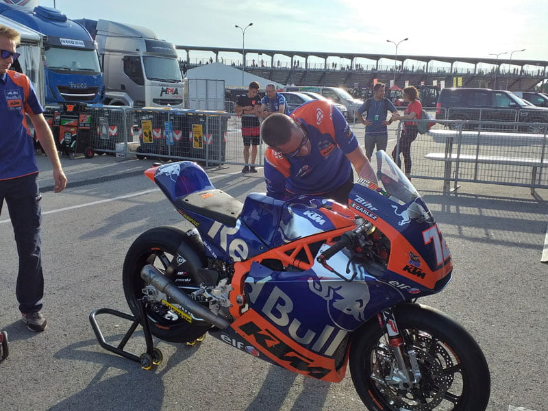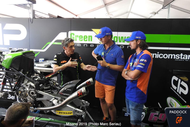 Par la suite, Marc nous a permis de rencontrer un passionné comme Alain BRONEC, responsable du team CIP-GREEN POWER, qui nous a expliqué, en toute simplicité, le fonctionnement d’une de ses 2 Moto3 KTM.