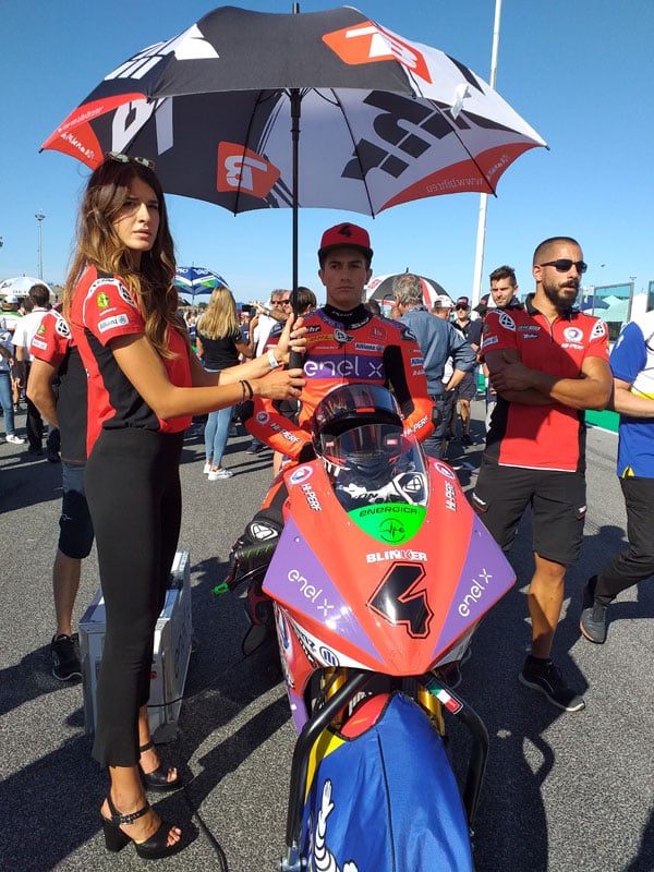 Hervé, Mathilde, Pierre et Guy de TECH3 nous ont réservé un moment privilégié. Nous avons pu faire un tour de circuit en véhicule pour assister de la voie de sécurité à l’une des séances d’essai des motos GP. A deux reprises, nous nous sommes rendus sur la grille de départ des motos-e accompagnés par quelques pilotes de renoms comme Marco MELANDRI, Sete GIBERNEAU, Lucio CECCHINELLO et tellement d’autres…