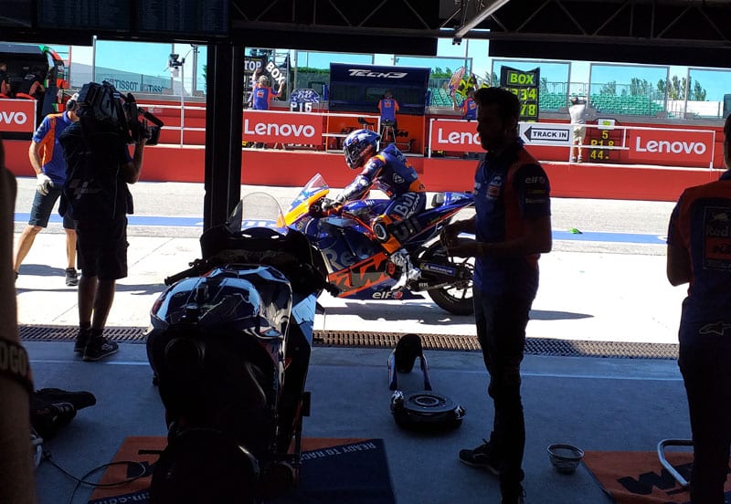 En plus de visiter les box TECH3 des MotoGP et des Moto2, nous avons eu la chance d’assister à une séance d’essai en live dans leur box. C’était comme à la télé !