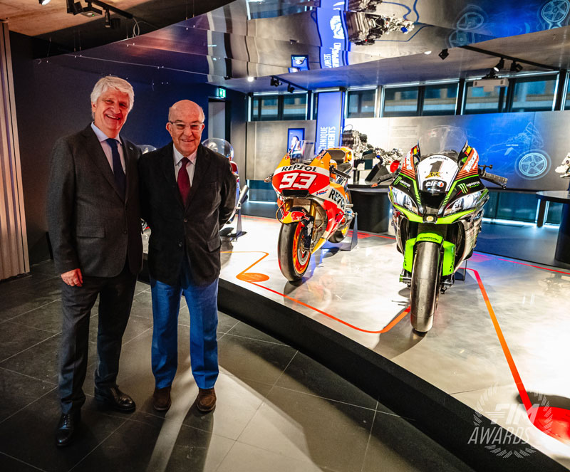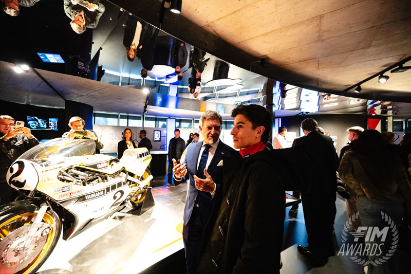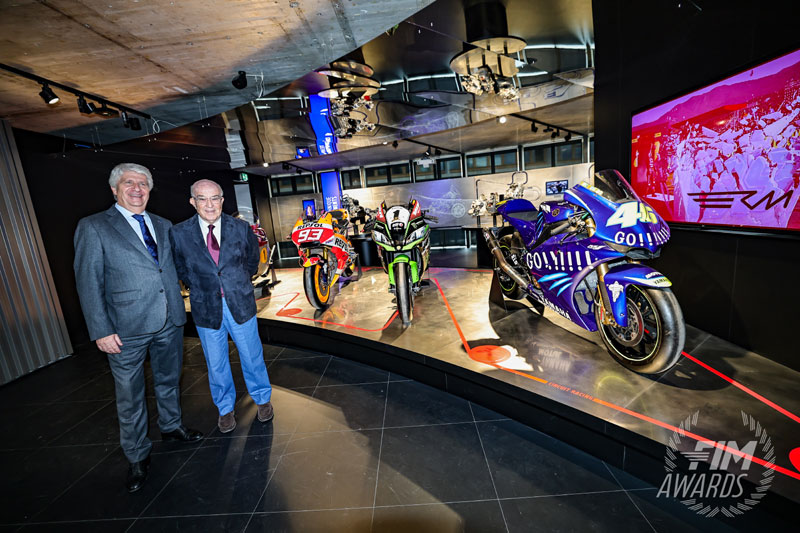 La cérémonie d’inauguration, précédant celle des FIM Awards au SwissTech Convention Center d’Écublens / Lausanne, a débuté par les habituels discours avant la coupe du ruban et l’arrivée sur scène de Giacomo Agostini, 15 fois Champion du Monde FIM en vitesse, Harry Everts, 4 fois Champion du Monde FIM de motocross, la légende FIM du trial et de la vitesse Sammy Miller, ainsi que de Carmelo Ezpeleta, CEO de Dorna, promoteur de la FIM MotoGP™, qui ont chacun reçu l’honneur de devenir les premiers membres du nouveau Hall of Fame de la FIM.