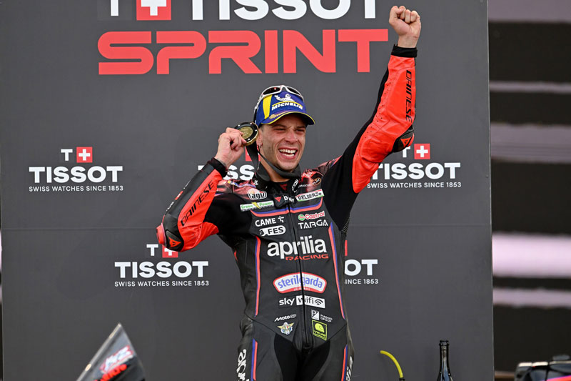 Samedi après-midi Marco Bezzecchi (Aprilia Racing) a remporté la Tissot Sprint (13 tours), devant Fermin Aldeguer (BK8 Gresini Racing) et Raul Fernandez (Trackhouse MotoGP Team).