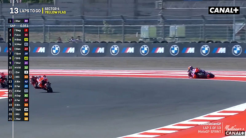 Si vous avez manqué les excellents départs de Francesco Bagnaia (Ducati Lenovo Team) et Marc Marquez (Gresini Racing MotoGP™), la chute dans le premier tout du pourtant expérimenté Jorge Martin (Prima Pramac Racing) qui sera peut-être un tournant de la saison, l’excellente prestation de Johann Zarco (Castrol Honda LCR), la chaleur de Fabio Quartararo (Monster Energy Yamaha MotoGP™) avec Franco Morbidelli (Prima Pramac Racing) et la remontée habituelle de Enea Bastianini (Ducati Lenovo Team) en fin de course, la chaîne cryptée vous offre une petite séance de rattrapage en accéléré.