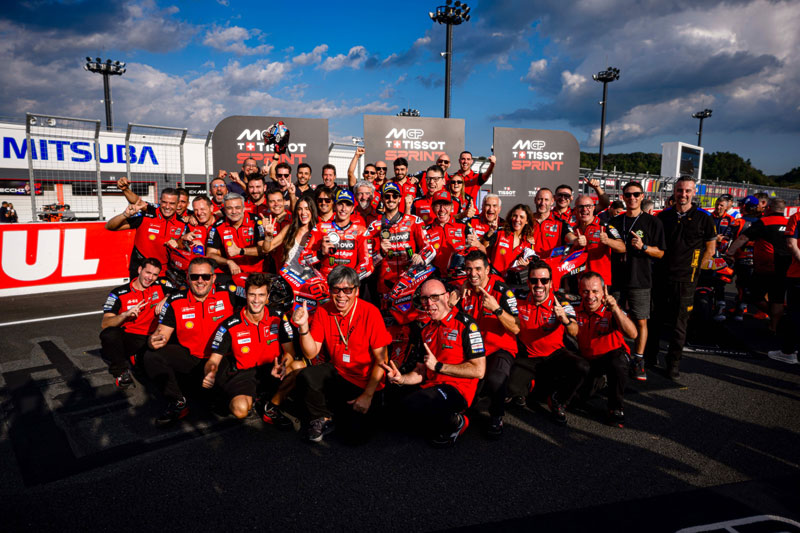 Francesco Bagnaia a décroché à Motegi sa deuxième victoire de Grand Prix de la saison, après Austin. C’est sa première double victoire (Sprint et GP) depuis le Grand Prix de la Solidarité l’an dernier, et sa deuxième double victoire consécutive ici à Motegi. Il est le deuxième pilote en 2025 à réaliser un doublé, avec son coéquipier Marc Marquez (10 doublés jusqu’à présent).
