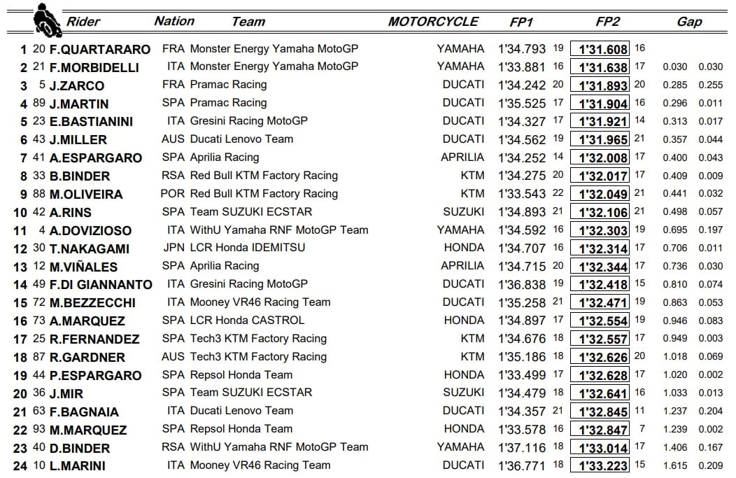 « J’ai bien fini la journée. Nous avons notamment bien travaillé dans l’après-midi car j’ai pu être rapide et avoir de bonnes sensations sur ma moto à ce moment-là. Lors du time attack ce n’est pas encore cela mais nous travaillons également dessus pour être performants demain. Comme chacun sait, l’allocation des pneus est différente et cela rend nécessaire de procéder à quelques changements. L’équipe travaille dessus, donc j’ai bon espoir de faire de bonnes FP3, rester dans le top 10 et réaliser de bonnes qualifications dans la foulée. »