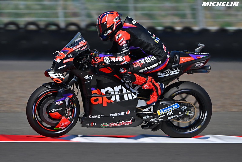 En Indonésie, Maverick Vinales sauve la face d’Aprilia ce vendredi. La firme de Noale a connu une sorte de journée noire, avec de maigres résultats d’une part, mais aussi, la perte d’un élément important en la personne de Miguel Oliveira, poignet cassé. Vinales sera le seul représentant d’Aprilia en Q2 à moins que ses collègues ne s’extirpent d’une Q1 qui s’annonce assez relevée. L’Espagnol, en partance pour KTM Tech3 l’année prochaine, constate avec amertume la régression de son employeur.