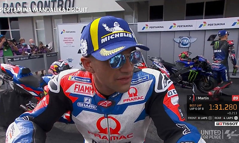 A peine descendu de sa machine après avoir obtenu la deuxième place à l’issue des qualifications du Grand Prix d’Indonésie, Jorge Martín s’est confié devant la caméra du site officiel MotoGP.com.